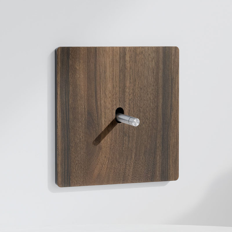 Este modelo presenta una placa con un acabado de efecto realista que simula la madera de nogal, destacándose por su color marrón oscuro con vetas claras. Su superficie suave y mate otorga un acabado lujoso, pero al mismo tiempo transmite una sensación de calidez. Las placas están fabricadas en termolaminado de alta presión, un material ignífugo, fácil de limpiar, antibacteriano y resistente a la humedad.