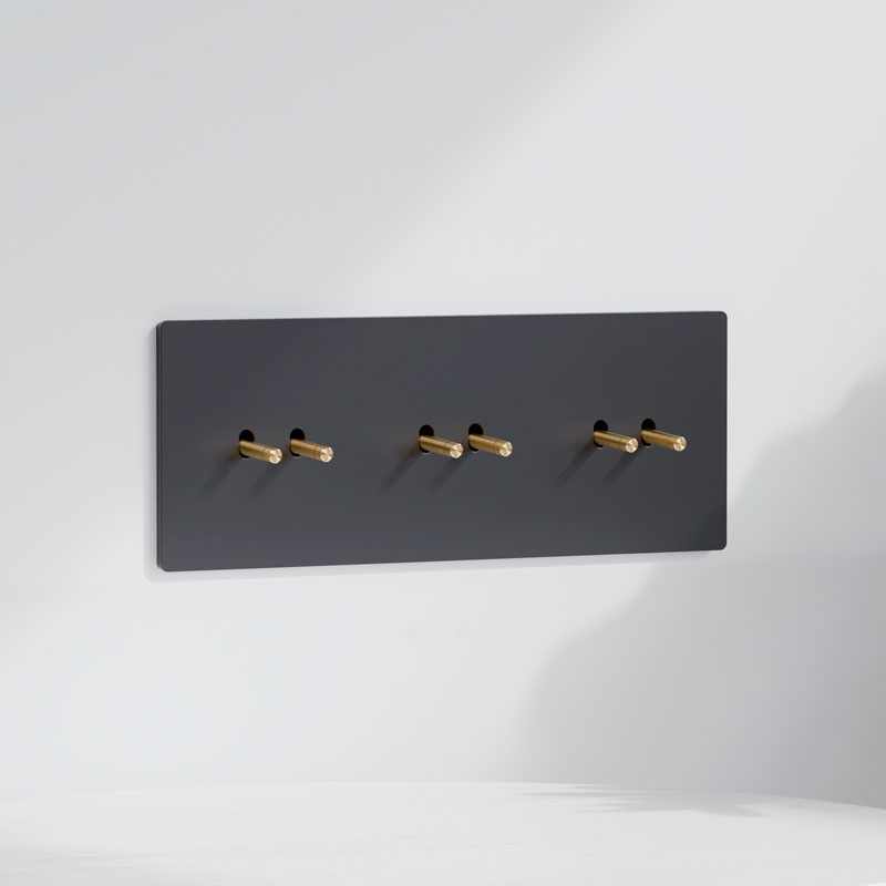 Este producto incorpora seis palancas que pueden instalarse como interruptores simples, permitiendo que cada una controle un punto de luz desde 1 sitio.