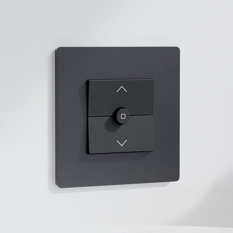 Interruptor persianas de 230V~ con tres posiciones (subir, bajar y paro), diseñado para el control cómodo y preciso de persianas motorizadas. Permite detener la persiana en cualquier punto, ofreciendo un manejo sencillo y seguro.