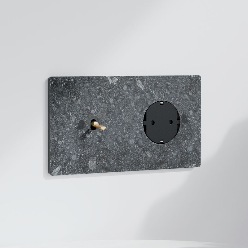 Nota: Los acabados mostrados han sido representados con la mayor precisión posible, pero pueden presentar ligeras variaciones en comparación con el producto final debido a las diferencias en la visualización de pantallas o dispositivos digitales, así como a la manera en que la luz en los espacios interiores puede alterar la percepción del producto; Pulsador y Schuko